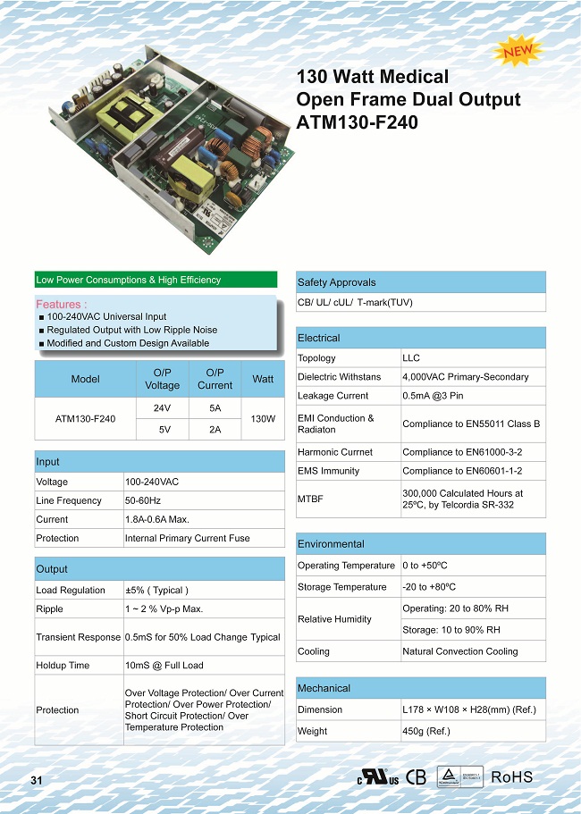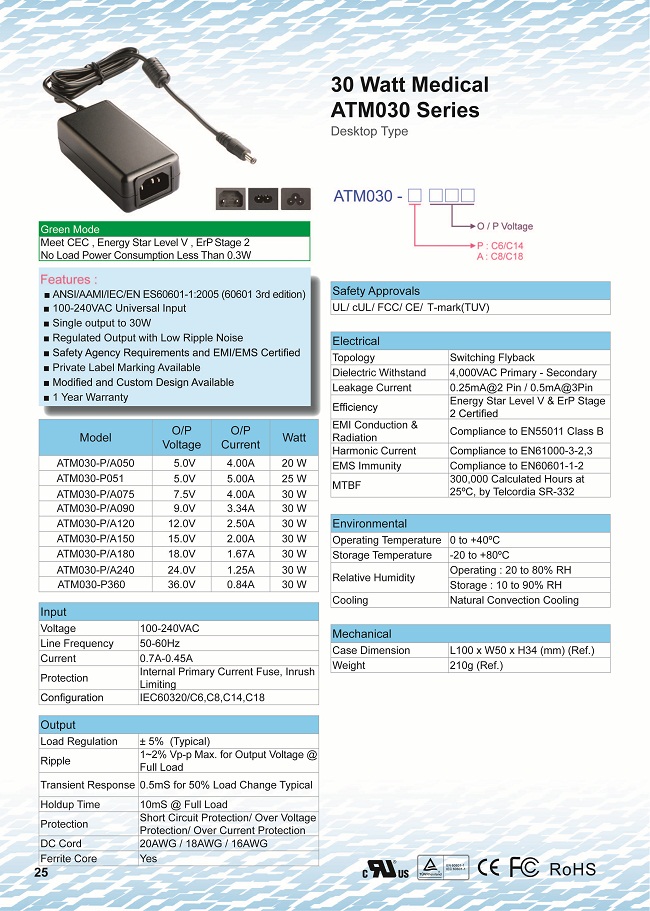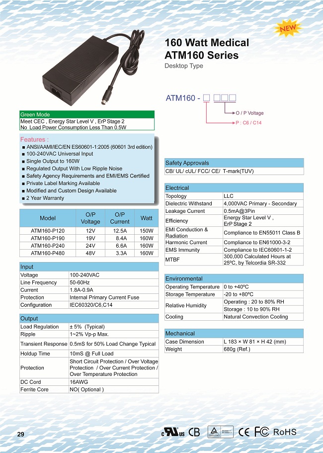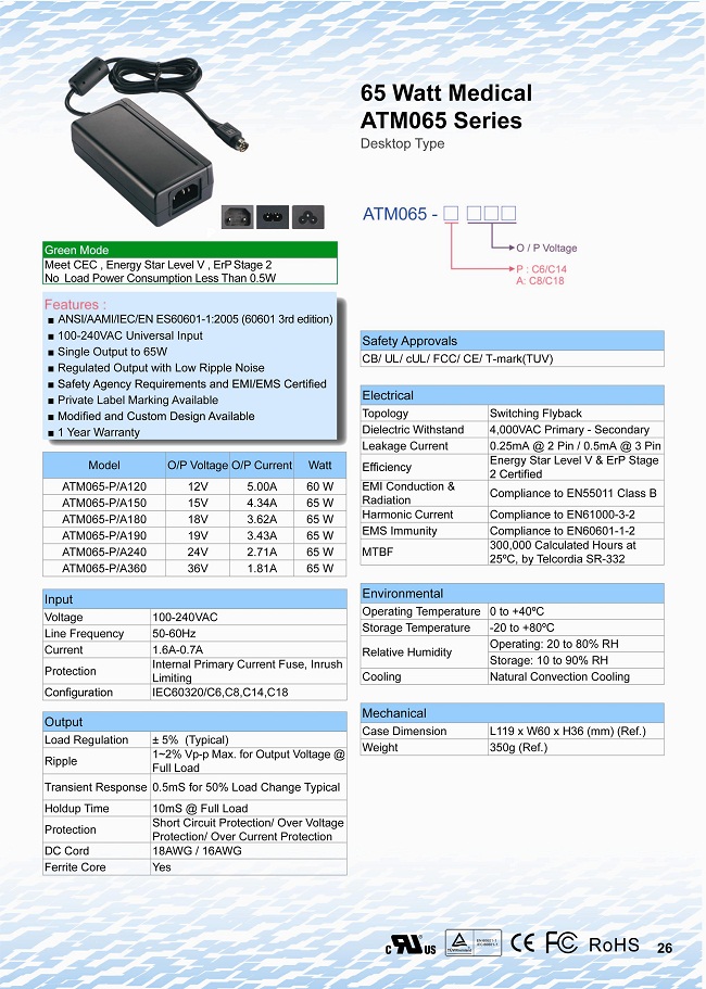의료용 아답터 5V ~ 48V, 0.84A ~ 16A